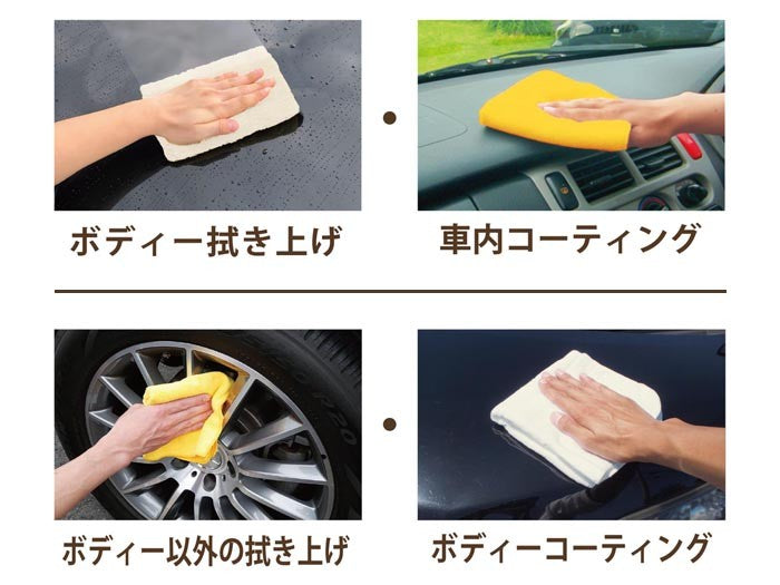 ⢠  Yellow cloth: Great for exterior surfaces like body panels and wheels