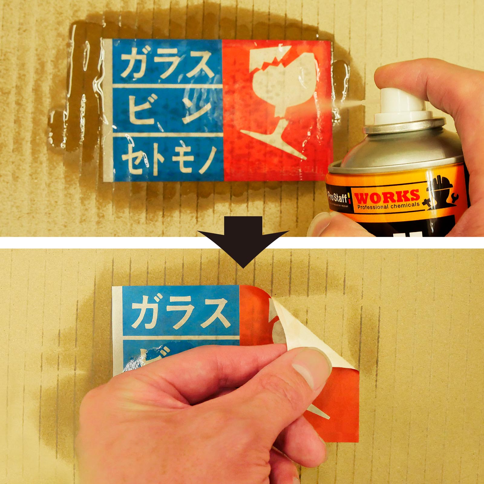 • Paper stickers (permeable): Spray directly and wait 3–5 minutes before peeling